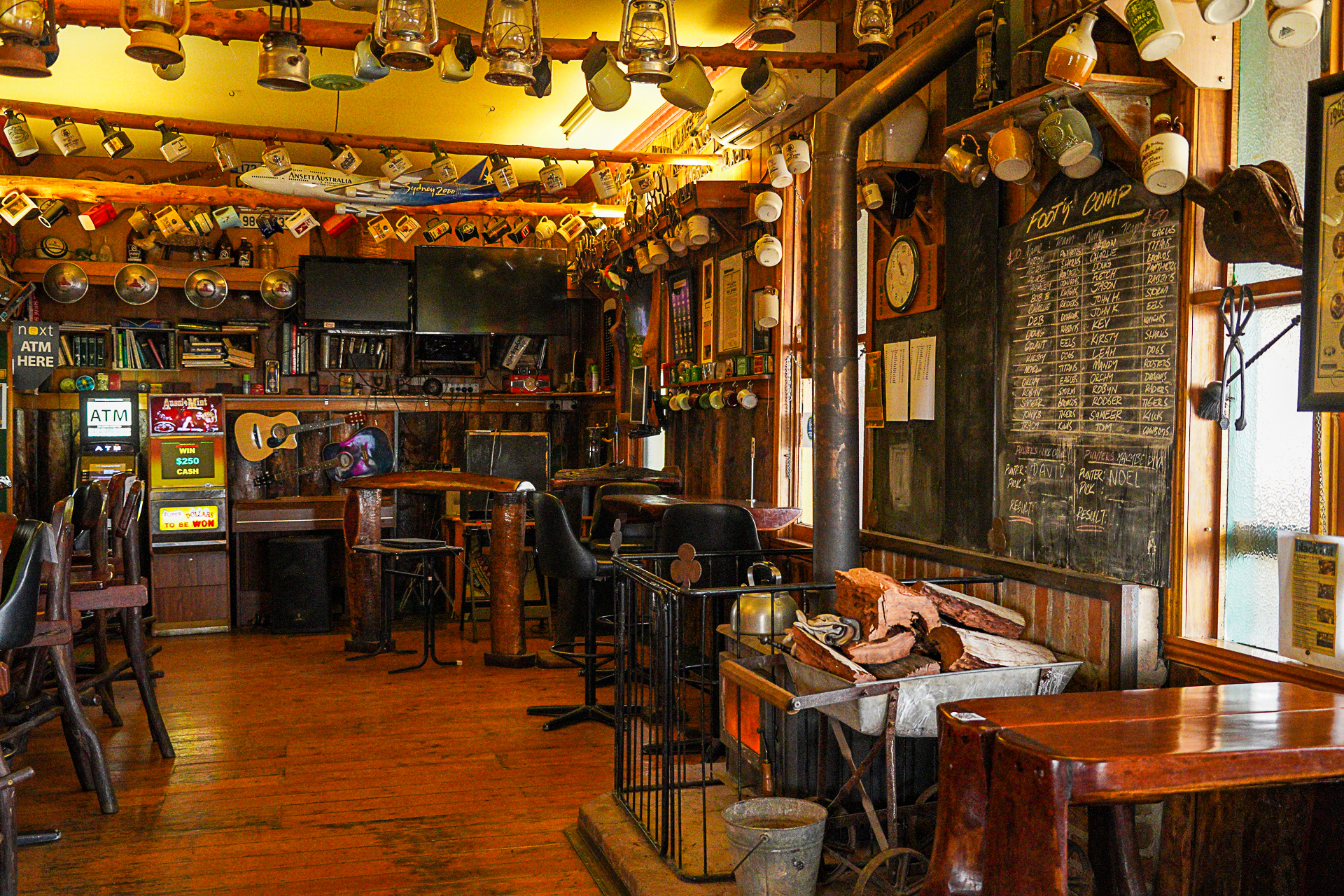 A rustic bar with a firebox to keep you warm and loads of memorabilia on display throughout the pub. Pub stools with a character of their own, old tilly lamps, hats, stubby coolers – this pub has a memorabilia collection rivaling other country pubs in south east Queensland.